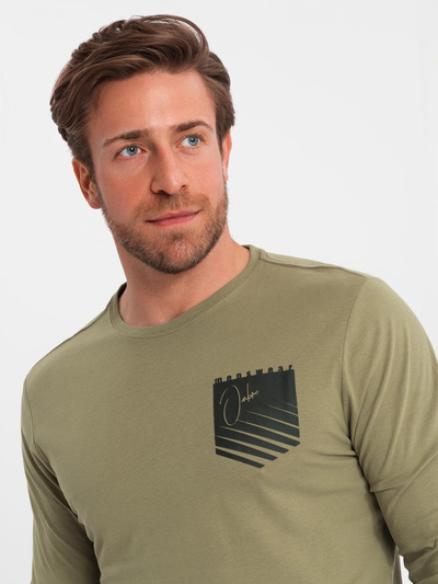 Men's cotton sweater with round neckline - dark olive V7 OM-SWSW-0103