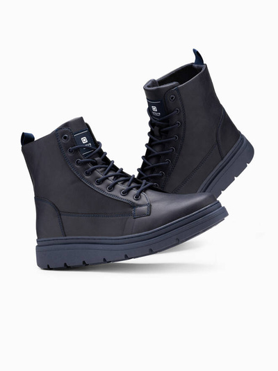 Jednokolorowe wysokie męskie buty z ozdobnymi przeszyciami – granatowe V4 OM-FOBO-0133