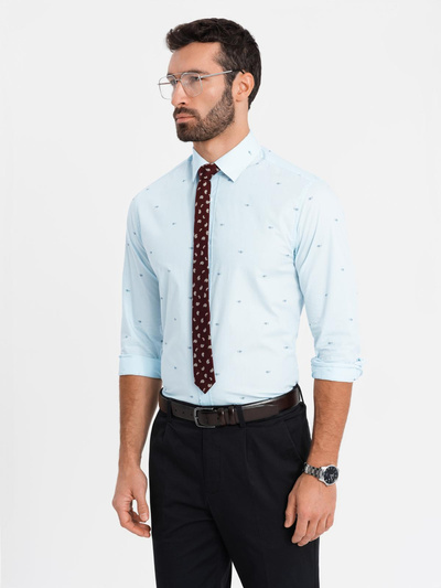 Klasyczna męska bawełniana koszula SLIM FIT w palmy - ciemnoniebieska V5 OM-SHCS-0156